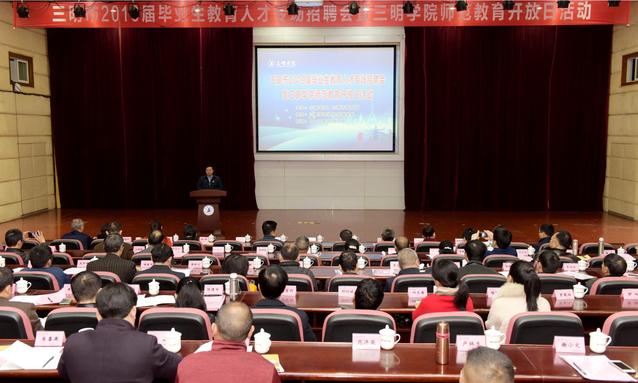 12月9日上午,我校与三明市教育局共同举办2019届毕业生教育人才专场招聘会暨三明学院师范教育开放日活动。校领导兰明尚、赖锦隆、张君诚,三明市教育局局长陈兴、三明市人力资源与社会保局副局长陈永连、梅列区副区长冯火珠、三元区副区长黄丽鸿、永安市副市长郑晓英、大田县副县长涂林瑢、明溪县副县长蔡丽青、清流县副县长周美华出席活动。